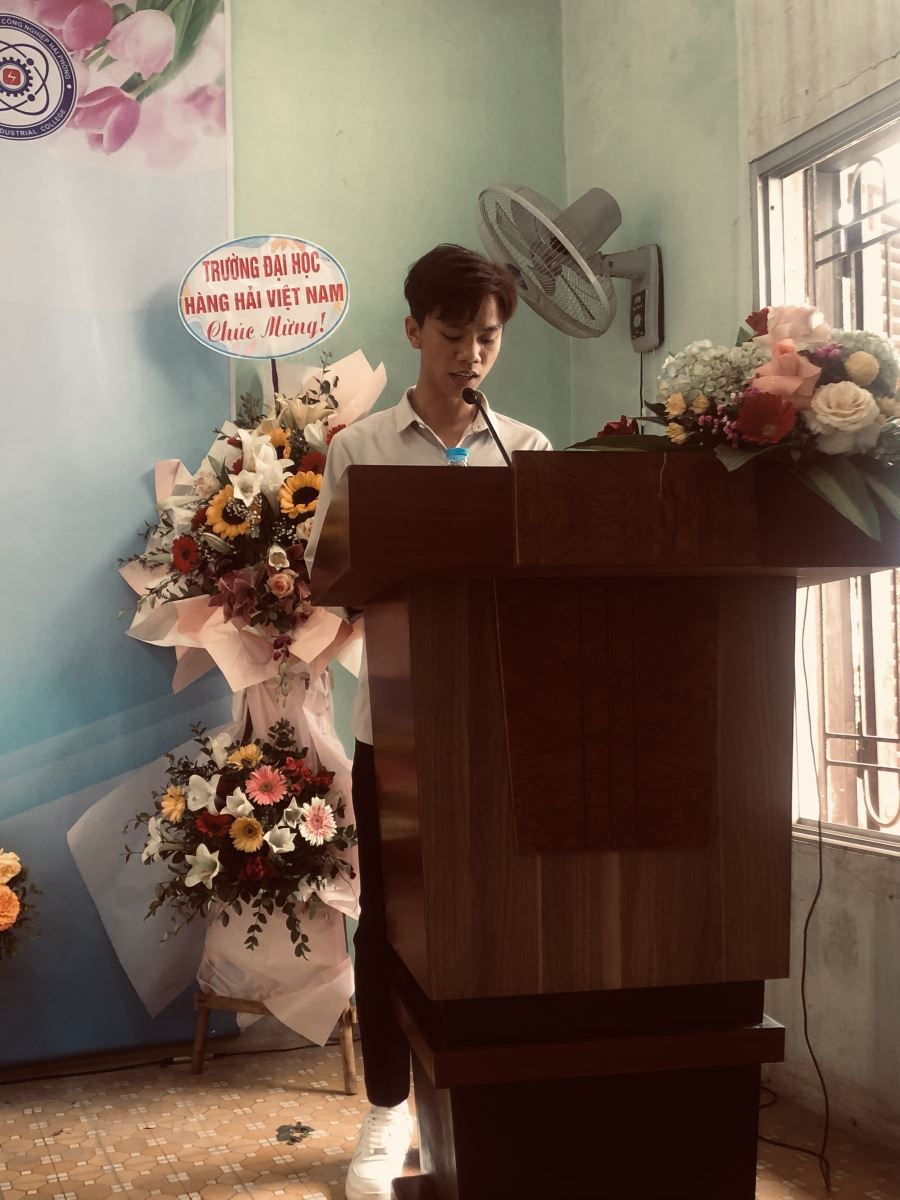 Thay mặt học sinh, sinh viên nhà trường, sinh viên Tống Văn Đại khoa Điện tử, lên phát biểu tri ân thầy, cô giáo nhân ngày Nhà giáo Việt Nam 20/11 và Khai giảng năm học mới 2022 - 2023.