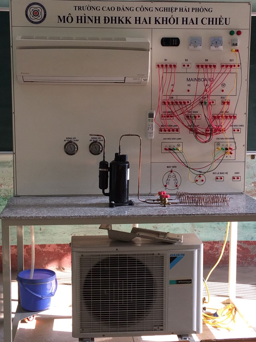 Mô hình là sản phẩm thiết thực, mô phạm để các em HSSV học thực hành, áp dụng tốt cho các bài giảng về khối nóng, lạnh của điều hóa không khí.