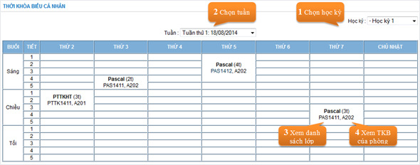 Chọn mục Thời khóa biểu để xem thời khóa biểu giảng dạy của từng tuần.
