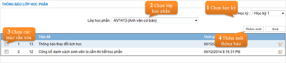 3. Thông báo cho các lớp học phần