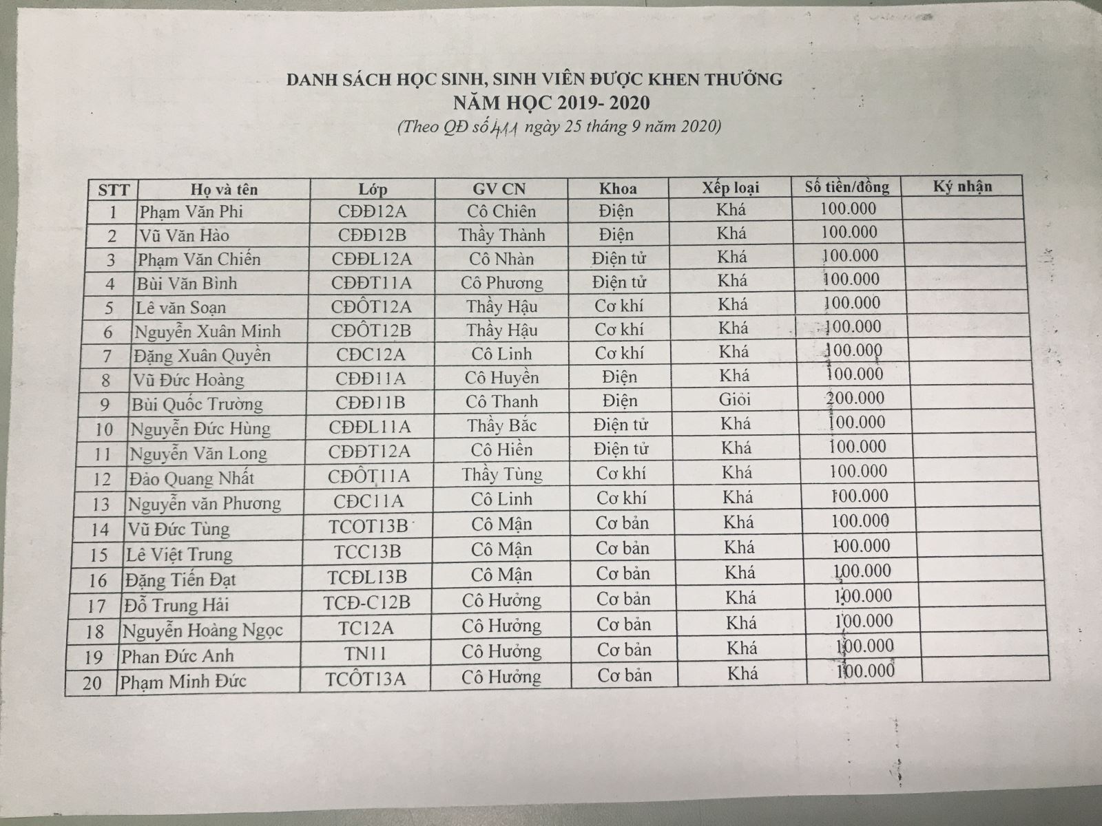 DANH SÁCH HSSV-TTL ĐƯỢC KHEN THƯỞNG NĂM HỌC 2019-2020