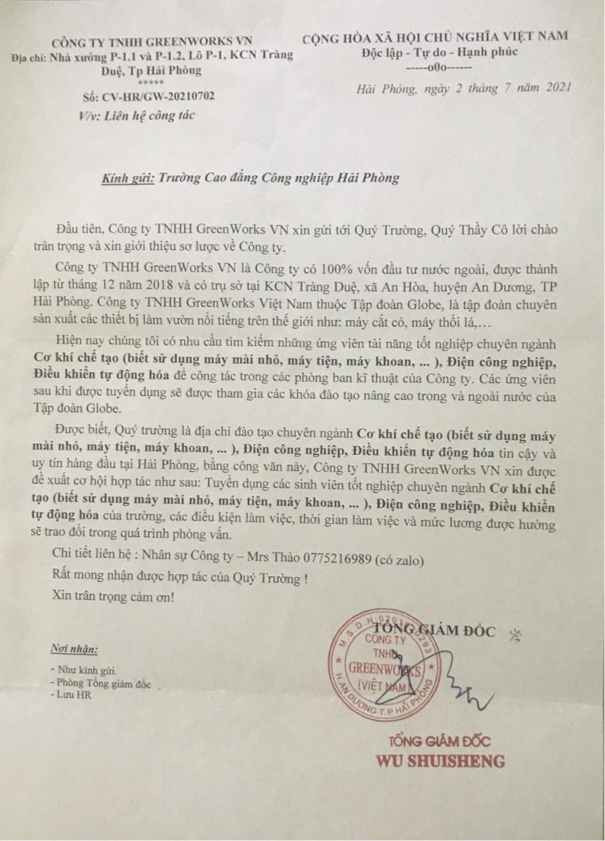 CÔNG TY TNHH GREENWORKS VN TUYỂN DỤNG