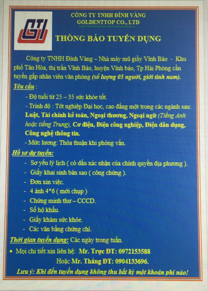 CÔNG TY TNHH ĐỈNH VÀNG TUYỂN DỤNG