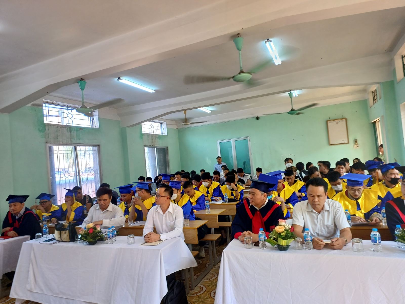 Đến dự có thầy Cao Anh Tuấn Bí thư Đảng uỷ, Phó Hiệu trưởng phụ trách nhà trường; đại diện các doanh nghiệp, các nhà tuyển dụng việc làm; lãnh đạo các phòng, khoa, thầy cô giáo và toàn thể 119 em học sinh, sinh viên tốt nghiệp đợt 1 năm 2022.