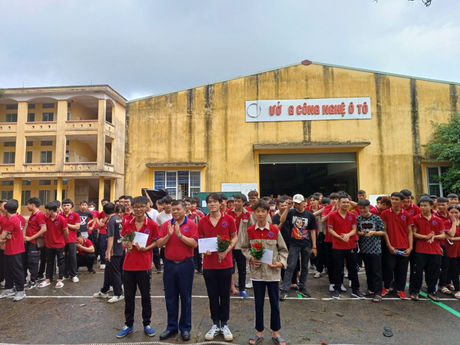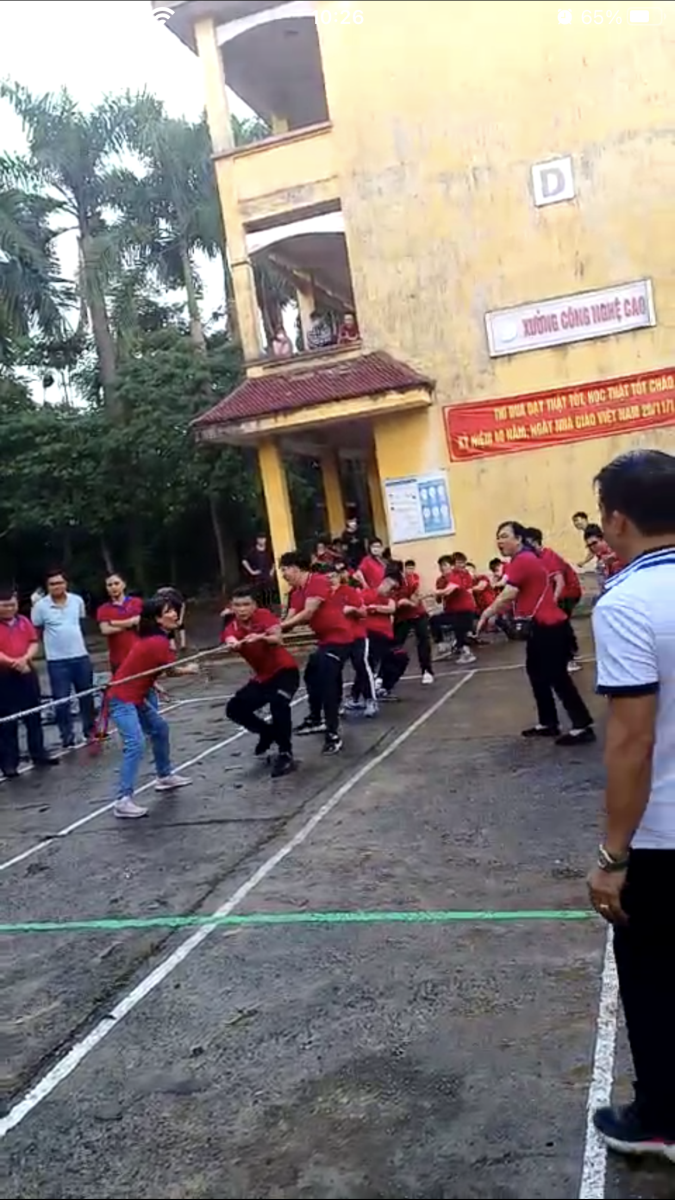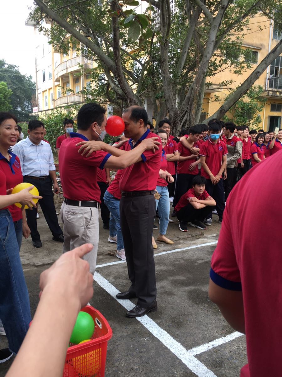 Thầy Cao Anh Tuấn, Bí thư Đảng uỷ, Phó Hiệu trưởng phụ trách nhà trường, thay mặt lãnh đạo lên trao giải cho các tổ công đoàn đạt giải, di chuyển giữ bóng bằng đầu.