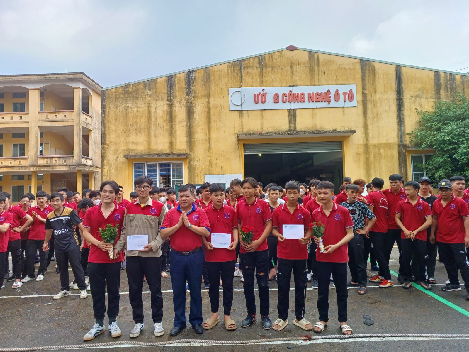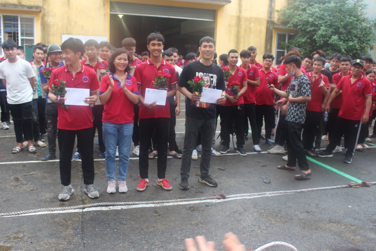 Thầy Phạm Văn Đát, Phó Bí thư Đảng uỷ, Trưởng phòng Công tác sinh viên lên trao giải Kéo co cho các đội.